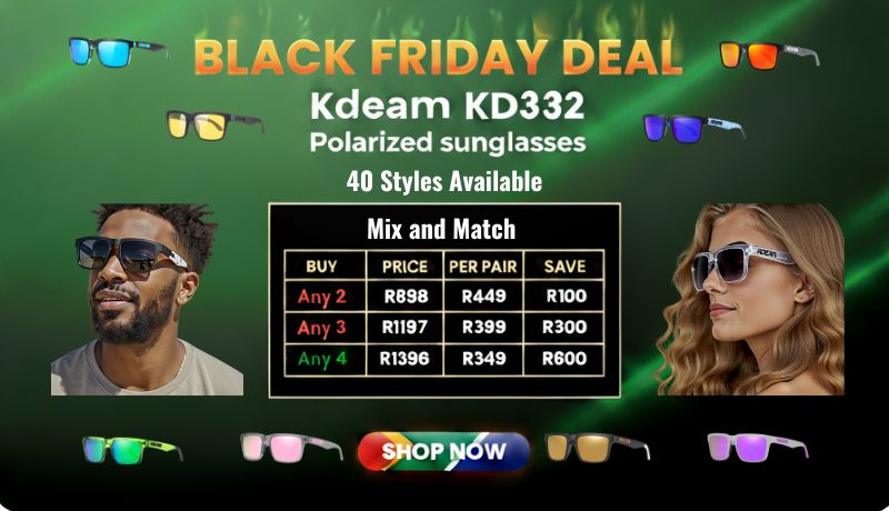 Double your style with Kdeam KD1302 Polarized Sunglasses! Purchase one pair and get another absolutely FREE. Exclusive Smael South Africa offer - limited stock available!